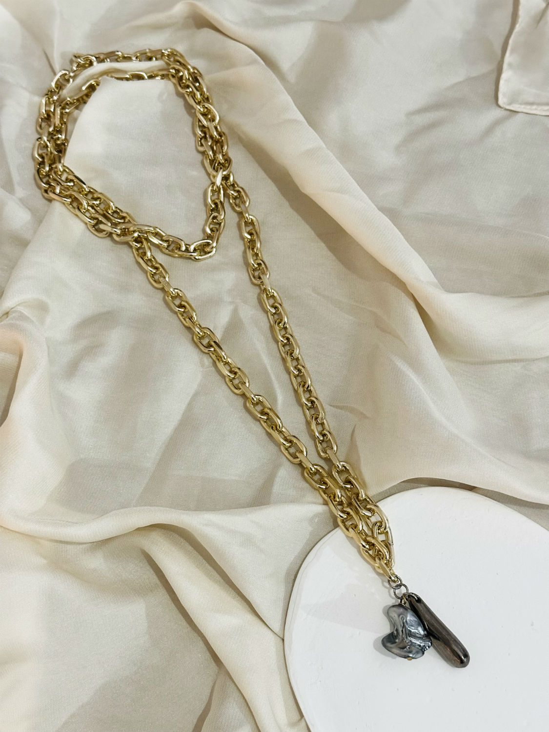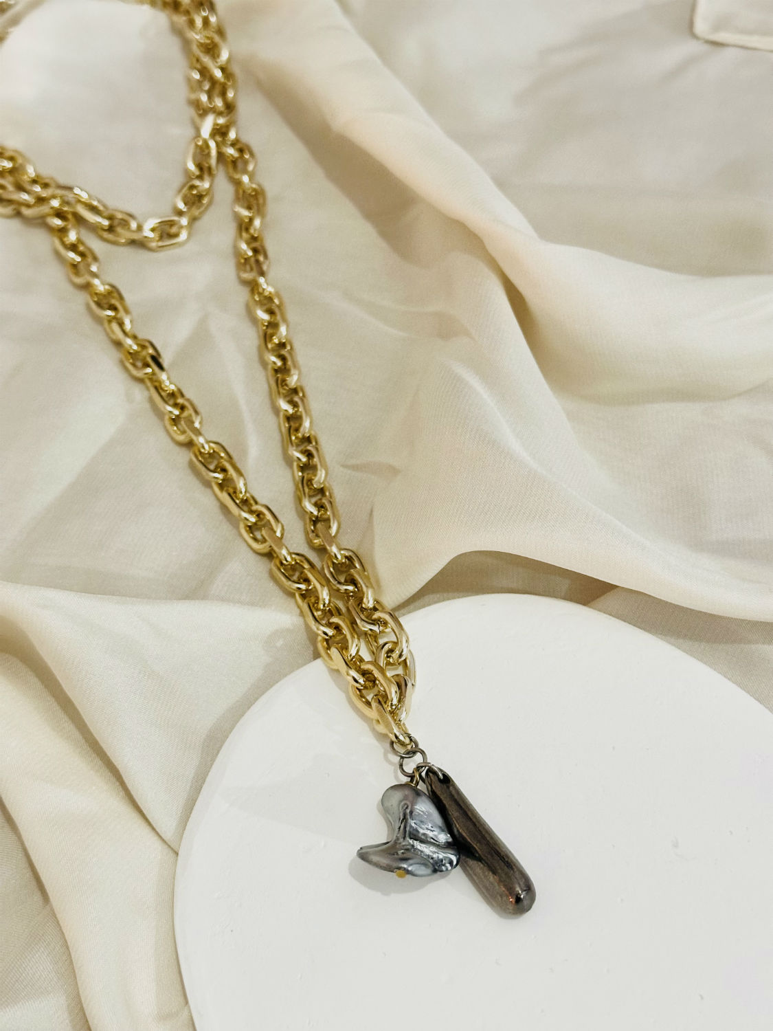 Ατσαλένια, χονδρή αλυσίδα, μακριά πάνω από 100 εκατοστά, σταθερή σαν υπόσχεση και αιθέρια σαν ανάμνηση.